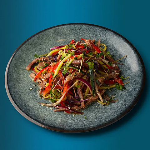 Говядина, огурец свежий, перец болгарский, кунжут, китайская заправка