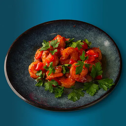 Жаренные креветки в кисло-сладком соусе